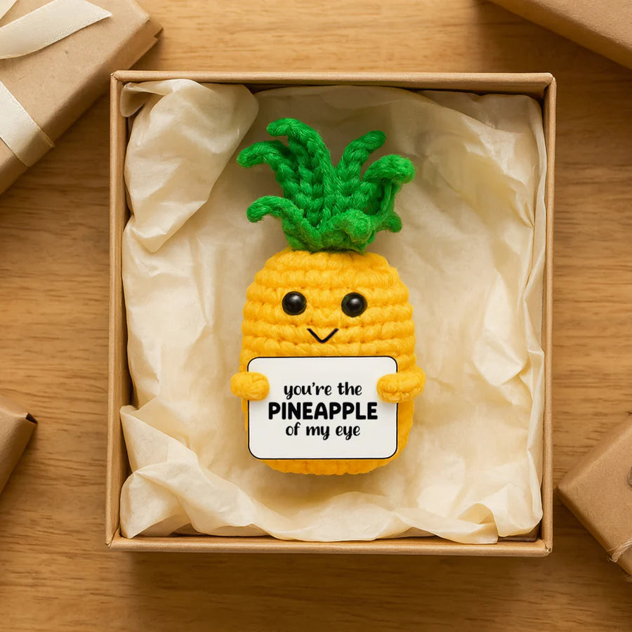 • IN-HOUSE DESIGN: Holding a stitched sentiment that reads, “You’re the PINEAPPLE of my eye,” this friendly fruit features a bright smile, structured leaf crown, and a joyful spirit. Every detail—from its ribbed texture to its cheerful face—was made to spread love and warmth.