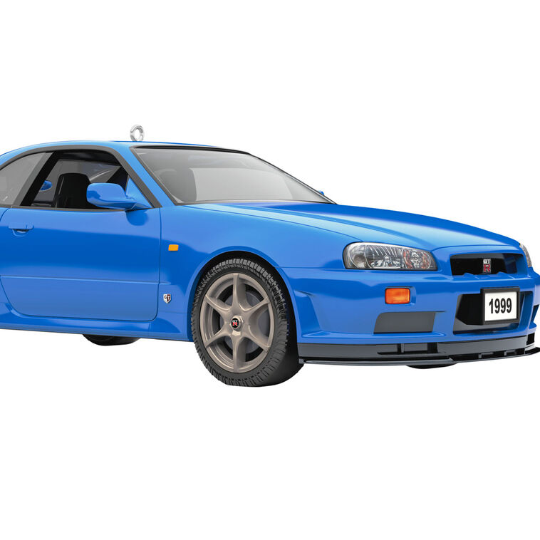 Speed into the holidays in style with this Christmas tree ornament based on the high-performing, race-worthy Nissan Skyline GT-R coupe. With a vibrant blue paint job and racy rear spoiler, this die-cast metal car features wheels that turn and year-dated license plates.