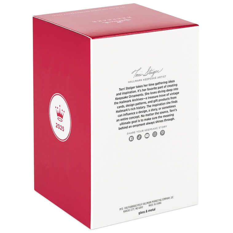 Celebrate the bright memories and happy moments that have come to you and your family this year with this commemorative 2025 Christmas tree ornament. The warm yellow glass ball features an elegant frosted glass design around the date and an embossed metal cap.