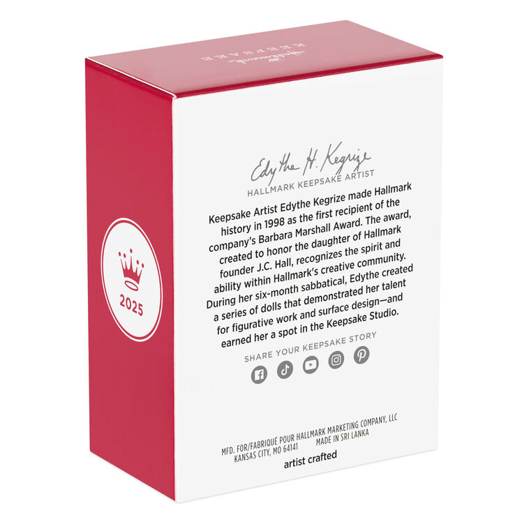 Fashion a very merry Christmas for a quilter, sewist or your own crafty self with this charming Christmas tree ornament. This festive, green reindeer decoration is made of spools of red and green thread with gold scissors antlers, a button tail and a silver thimble bell tied around its neck.