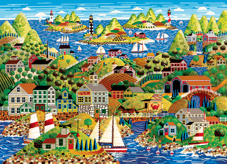 Celebrate life by the sea with Home From the Sea, a charming folk art scene that captures the beauty of ocean-going communities and the rhythm of small-town living. Rich with color, pattern, and storytelling, this puzzle offers endless details to discover as the picture comes together.