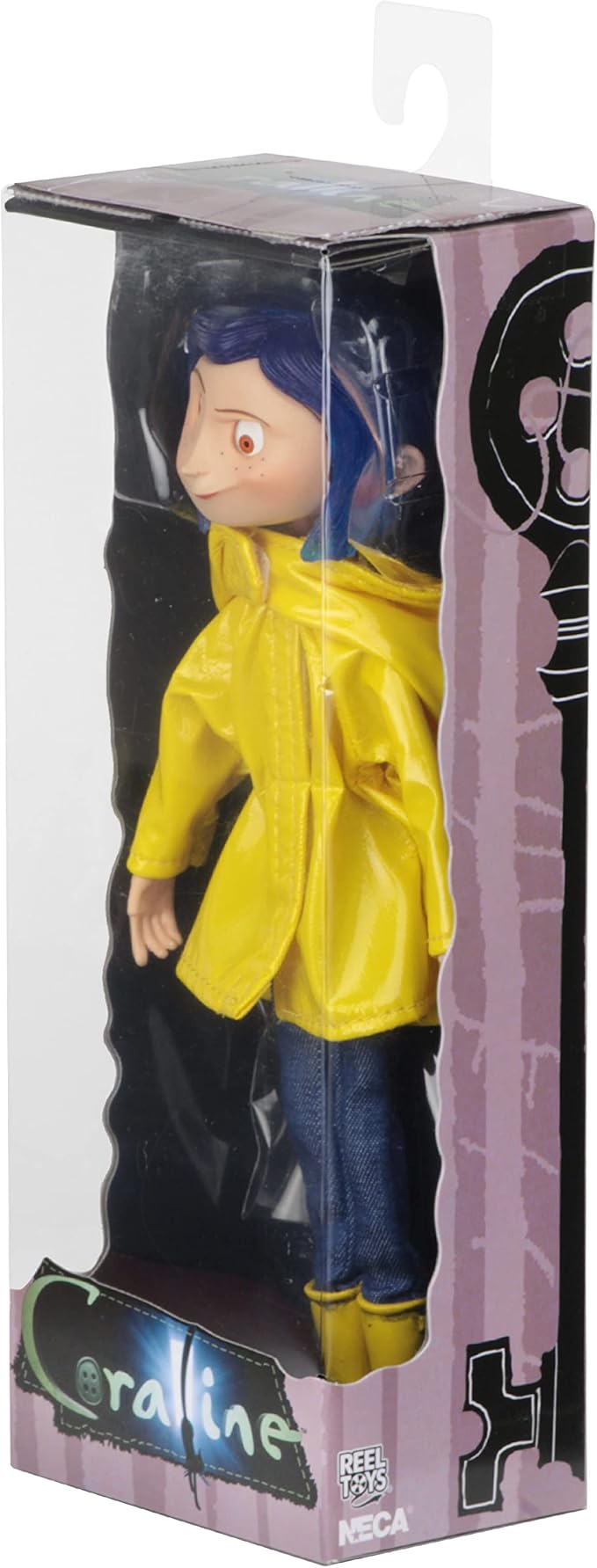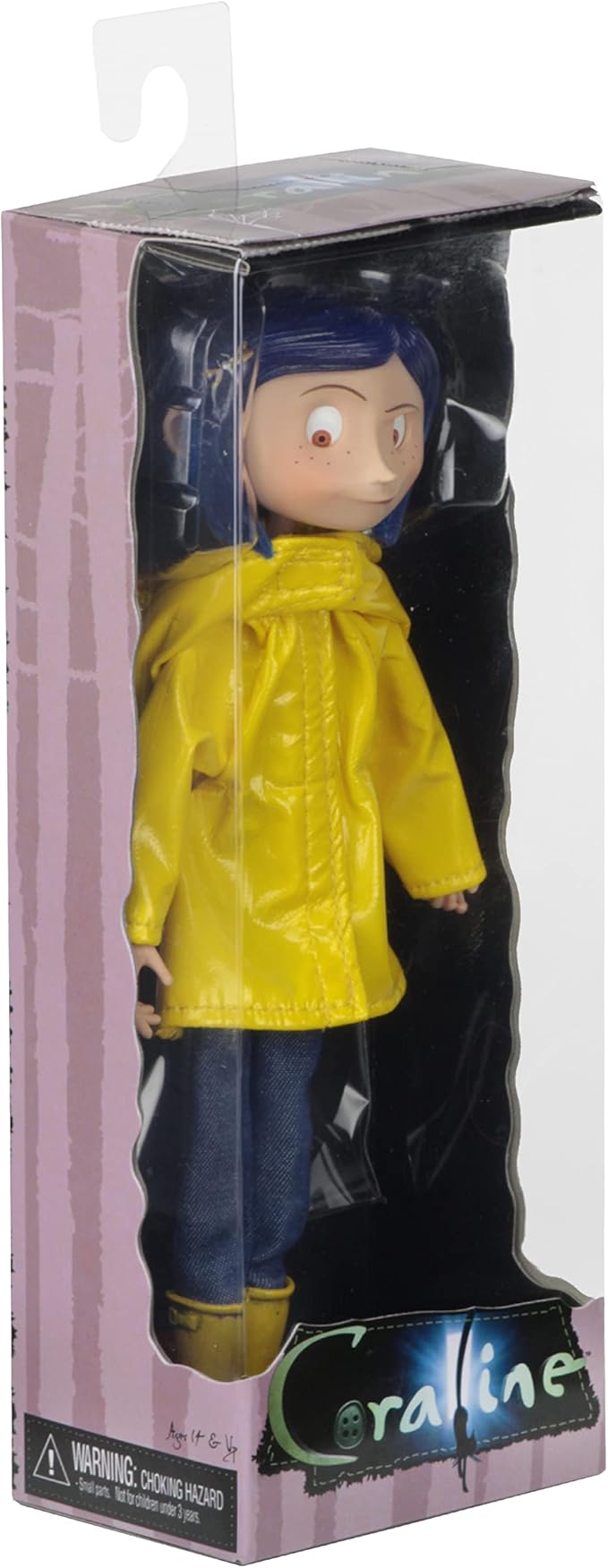 Step into the whimsical world of Neil Gaiman's beloved stop-motion classic with this meticulously crafted 7.5-inch Coraline collectible figure. Featuring authentic fabric raincoat and boots, this NECA creation captures the character's iconic look with impressive detail. The doll boasts full articulation and bendable construction, allowing dynamic posing and display flexibility. Moveable eyes add an extra layer of expressiveness, while the included display stand ensures your figure takes center stage on any shelf. Perfect for collectors and fans seeking a tangible connection to this darkly enchanting tale.